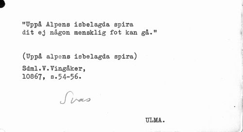 //// TJppå alpens isbelagda spira //// Dit ej någon mensklig fot kan nå . . . //// l //// i //// i v //// ) » //// i \ //// (Uppå alpens isbelagda spira) [ //// Sdnil. V. Vingåker, //// 10867, s.54-56. //// I //// ULMA. //// V t ////