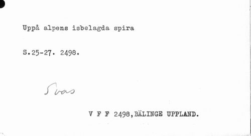 //// v //// ! //// TJppå alpens isbelagda spira //// c //// S.25-27. 2498. //// J Ut^O //// V F ! 2498,BÅLINGE UPPLAND. ////