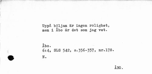 //// Uppå böljan är ingen rolighet, men i ibo är det som jag vet. //// Åbo. //// 6:4, SLS 542, s.356-357» ar.. 170. //// ÅBO. ////