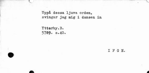 //// Uppå dessa ljuva orden, //// svingar jag mig i dansen in //// Ytterby.B. //// 5789. s.40. //// ^ I F G H. //// % //// a a ////
