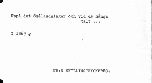 //// p //// Uppå det Smålandsläger och vid de många //// tal ij ?# ? //// i //// F ¦ //// Y 1869 g \ //// : //// ( //// KB:S SKILLINGTHYCKSEEG* //// k ////