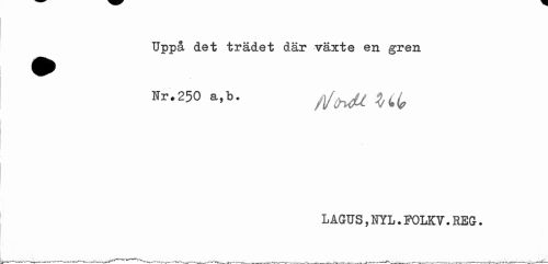 //// Uppå det trädet där växte en gren Hr.250 a,b. yj/^f ^ //// LAGTJS, NYL. FOLKV. REG. ////
