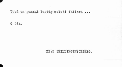 //// TJppå en gammal lustig melodi fallera ... //// G 264. //// KBsS SKILLINGTRY CKSREG. //// k ////