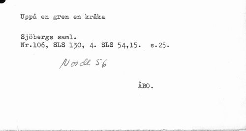 //// Uppå en gren en kråka Sjöbergs saml. //// Hr.106, SLS 130, 4. SLS 54,15- s.25. //// ÅBO. ////
