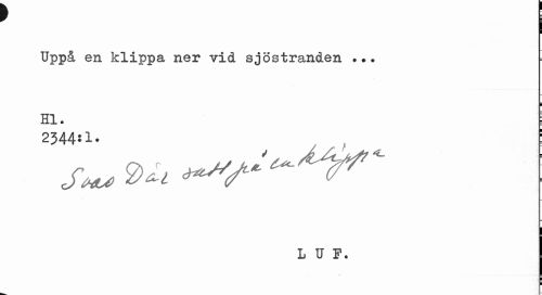 //// f j //// Uppå en klippa ner vid sjöstranden |. //// i //// hi. i //// 2344*1* : //// LO. //// i i ////