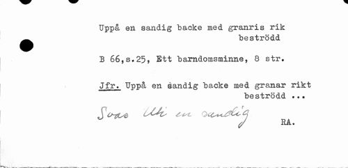 //// Uppå en sandig backe med granris rik ^^ beströdd //// B 66,s.25, Ett barndomsminne, 8 str. //// Jfr. Uppå en sandig backe med granar rikt //// beströdd ... //// Jo-ztsö L^ls Qcc^t^Cc^ //// </ RA. ////