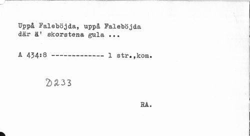 //// TJppå Faleböjda, uppå Faleböjda där ä* skorstena gula • //// A 434:8 --- 1 str*,kom. //// 2)£33 //// RA. //// F ////