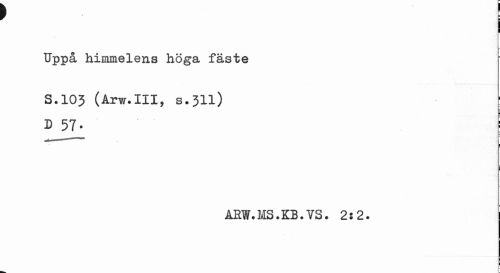//// i //// Uppå himmelens höga fäste //// S.103 (Arw.III, b.311) ! //// U57j_ I //// AKW.MS.KB.VS. 2:2. ! //// I //// T ////