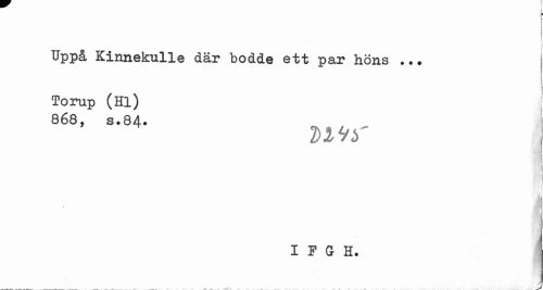 //// j- //// J //// Uppå Kinnekulle där bodde ett par höns . //// Torup (Hl) 868, s.84. //// I //// ! //// 1 //// \ IjHj //// IF5I. j ////