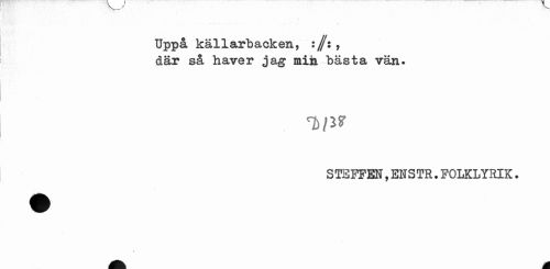 //// Uppå källarbacken, :/:, //// där så haver jag mik bästa vän. //// T>/JST //// STEFFEN,ENSTR.FOLKLYRIK. //// é //// ^fe A ////