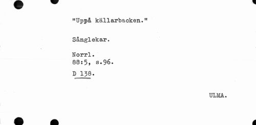 //// "Uppå källarbacken.11 Sånglekar. //// % //// Norrl. //// 88:5, s.96. //// D 158. //// ULM. ////