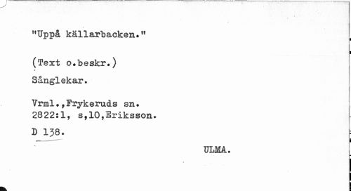 //// J* //// "Uppå källarbacken[ //// l //// (Text o«beskr«) Sånglekar» //// Vrml•,Frykeruds sn . 2822:1, s,10,Eriksson. //// D 138. //// ULMA. i ////