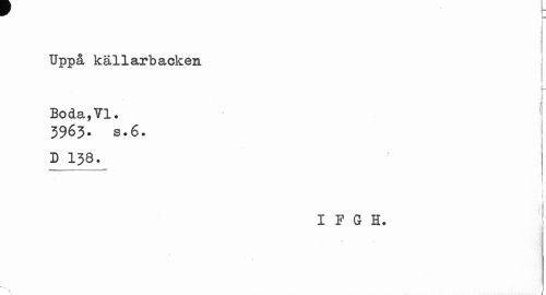 //// i //// Uppå källarbacken //// i- //// i ! //// Boda,VI. 3963. s.6. //// i //// D 138. //// f //// I //// f 1 //// I F G H. //// / ////