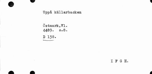 //// Uppå källarbacken Östmark,TI. //// 4489. s.8. D 138. //// I F G H. ////