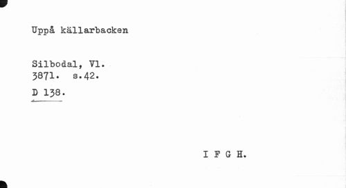 //// Uppå källarbacken Silbodal, VI. //// 3871. s.42. //// D 138. //// I P G H. //// k ////