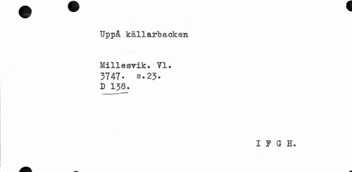 //// Uppå källarbacken //// -¦ « # wr + //// Millesvik. VI. //// 3747- s.23. //// D 138. //// I F G H. ////