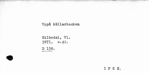 //// Uppå källarbacken Silbodal, TI. //// J871, s.42. //// D I38. //// I F G H. ////