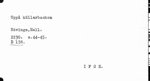 //// Uppå källarbacken = //// Rävinge,Hall. ; //// 22J0. s.44-45- j //// D 138. //// ¦ //// i ////