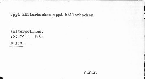 //// Uppå källarbacken,uppå källarbacken //// .¦¦".:.'¦' i i //// •»t -i //// Västergötland. 753 fol. s.6. //// D 138. //// i ¦ //// V.F.F. ! ////