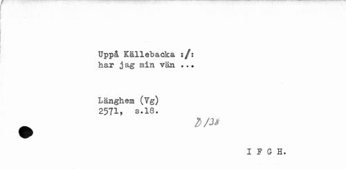 //// Uppå Källebacka :/: har jag min vän ?.? //// Länghem (Yg) 2571? s.18. //// J/W //// IFGH. ////