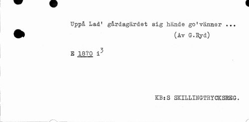 //// Uppå Lad' gårdsgärdet sig hände go'vänner fPI (Av G.Hyd) //// E 18?0 i5 //// KBsS SKILLIIGTRYCKSHEG. ////