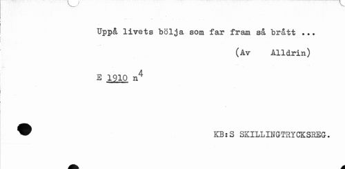 //// Uppå livets bölja som far fram så brått ... //// (Av Alldrin) //// E 1910 n4 //// ® KB:S SKILLIHGTRYCKSBEG. ////