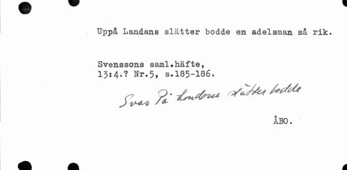 //// , Uppå Landans slätter bodde en adelsman så rik. Svenssons saml.häfte, //// 13:4.? Nr.5, s.185-186. //// ÅBO. " //// ^fc A ////