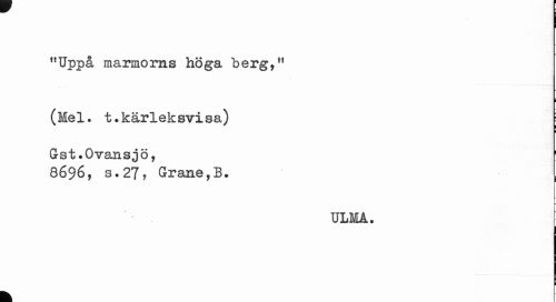 //// "Uppå marmorns höga berg,11 //// (Mel. t.kärleksvisa) ; //// Gst. Ovansjö, 1 //// 8696, s.27, Grane,B. //// ULMA. j //// t ////