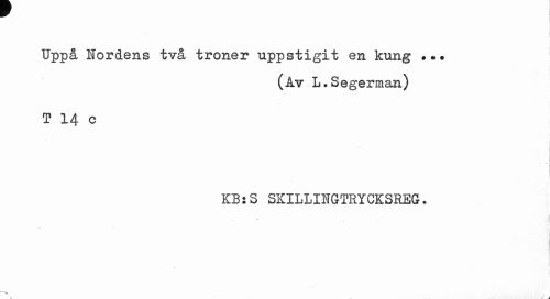 //// I //// Uppå Hordens två troner uppstigit en kung ... //// (åv L.Segerman) //// T 14 c //// | " i //// KB:S SKILLIIGTRYCKSREG. ////