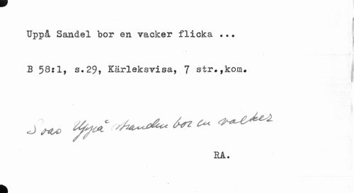 //// t //// Uppå Sandel "bor en vacker flicka ? ?• B 58:1, s.29, Kärleksvisa, 7 str.,kom. //// J ^ c- ***** //// HA. //// k ////