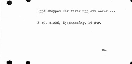 //// Uppå skeppet där firar upp ett ankar ..• B 40, s.206, Sjömanssång, 15 str. //// RA. ////