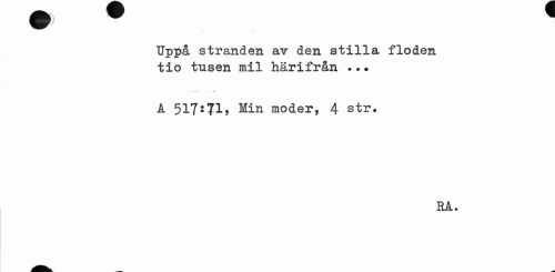 //// Uppå stranden av den stilla floden tio tusen mil härifrån ... //// A 517:71, Min moder, 4 str. //// RA. ////