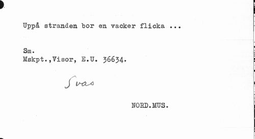 //// i //// Uppå stranden bor en vacker flicka //// Sm. p //// Mskpt.,Visor, E.U. 36634. É //// 1 //// J //// NOED. MXJS. //// \ ////