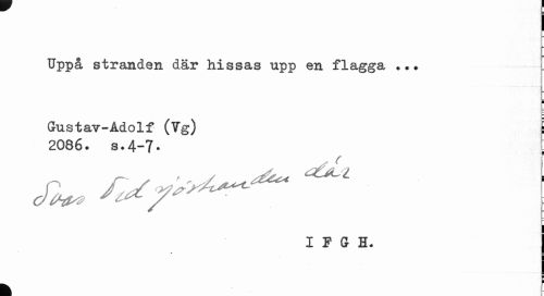 //// Uppå stranden där hissas upp en flagga . •• //// i ¦ //// Gustav-Adolf (7g) //// 2086» s.4-7* [ //// r JZy ^ ( //// IFGH. //// k ¦ ////