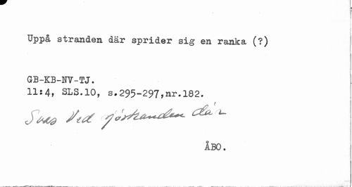 //// f //// I //// f I //// i //// Uppå stranden där sprider sig en ranka (?) GB-KB-FV-TJ. //// 11:4, SLS.10, s.295-297,nr.182. //// Sm, /t* y ^ ^ //// ÅBO. ////