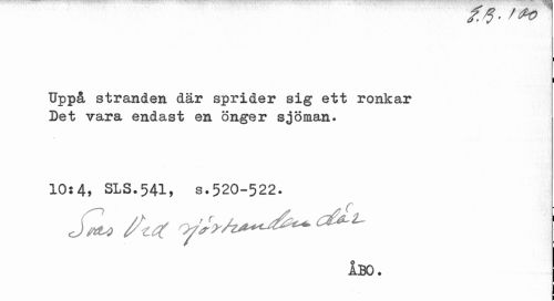 //// ^ o > / ^ //// I //// Uppå stranden där sprider sig ett ronkar Det vara endast en önger sjöman. //// 10:4, SLS.54I» s.520-522. //// J^ /V //// ÅBO. ////