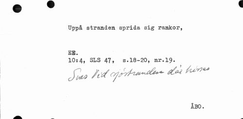 //// Uppå stranden sprida sig rankor, //// EE. //// 10:4, SLS 47, s. 18-20, nr. 19* //// fw A ? o/U™-^ éi» ^ //// ÅBO. ////