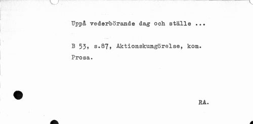//// tfppå vederbörande dag och ställe ... //// B 53v s.87, Aktionskungörelse, kom. Prosa. //// ^ RA. //// ^^ A ////