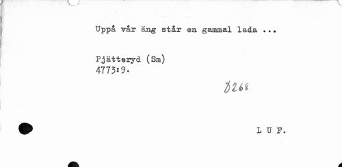 //// Uppå vår äng står en gammal lada ... Pjätteryd (Sm) //// 4773:9- //// i u* //// a ////