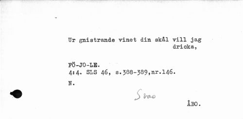 //// Ur gnistrande vinet din skål vill jag //// dricka, //// FÖ-JO-LE. ' //// 4*4. SLS 46, s.388-389,nr.146. //// N. //// ÅBO. ////