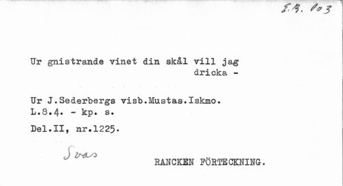 //// V * l/ ^ J> //// 1 //// Ur gnistrande vinet din skål vill jag //// dricka - //// c //// Ur J.Sederbergs vi sb?Mu s t as•Iskmo. L.8.4* - kp. s. //// Del.II, nr.1225* //// HANCKEN POETE CKHING • ////