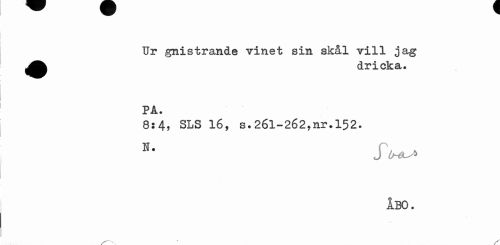 //// Ur gnistrande vinet sin skål vill jag ^^ dricka. //// PA. //// 8:4, SLS 16, s.26l — 262,nr* 152. //// ÅBO. ////