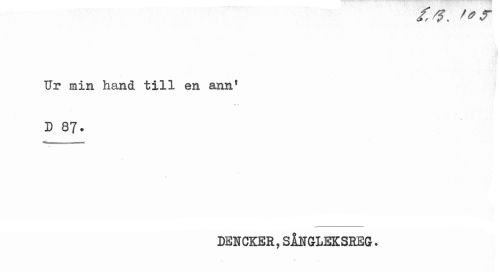//// i, v. '0 7 //// Ur min hand till en ann1 //// D 87. //// « ' i //// DENCKER, SÅITGLEKSREG. //// V ////