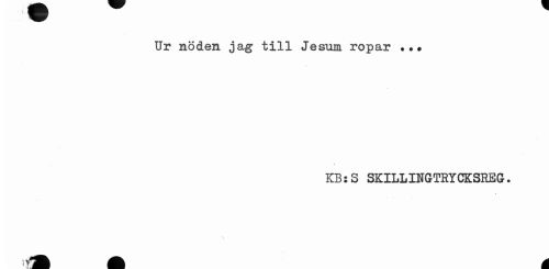 //// Ur nöden jag till Jesum ropar ..* //// KB:S SKILLINGTRYCKSREG. A é ////