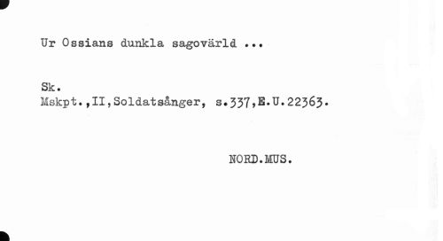 //// Ur Ossians dunkla sagovärld ... Sk. //// Mskpt.,11,Soldatsånger, s.337,E.U.2236?. //// NORD.MUS. //// k ////