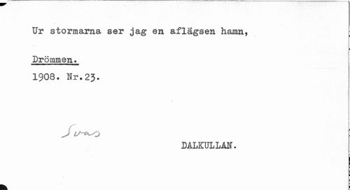 //// Ur stormarna ser jag en aflägsen hamn, Drömmen* //// 1908. Nr» 23. //// J //// DALKULLAN. //// i ////
