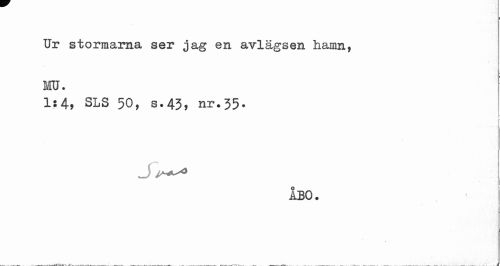 //// t //// Ur stormarna ser jag en avlägsen hamn, MU. //// 1:4, SLS 50, s.43, nr.35. //// ( //// f l //// ÅBO. //// i ////