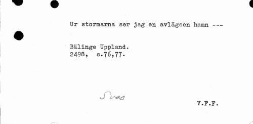 //// Ur stormarna ser jag en avlägsen hamn —— Bälinge Uppland. //// 2498, s.76,77- //// J ts-ag //// Y.F.F. ////
