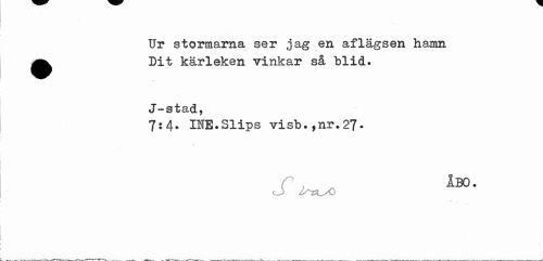 //// Ur stormarna ser jag en aflägsen hamn ^^ Dit kärleken vinkar så blid. //// J-stad, //// 7:4. INE.Slips visb.,nr.27* //// 130 ¦ ////