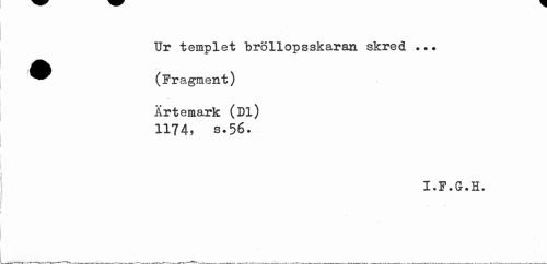 //// Ur templet bröllopsskaran skred. ... //// ^^ (Fragment) //// Ärtemark (Dl) 1174, s.56. //// I.F.G.H. ////